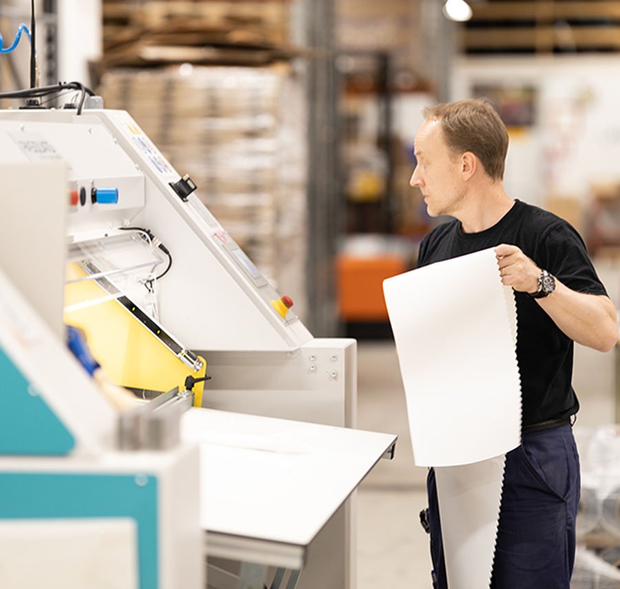 Tehtaamme sijaitsee Kurkimäessä, Itä-Helsingissä. Sama katto kattaa tuotekehityksen, painon, leikkurit ja varaston. Se tarkoittaa nopeampia prototyyppejä, tarkempaa laatua ja vähemmän logistiikkaa.